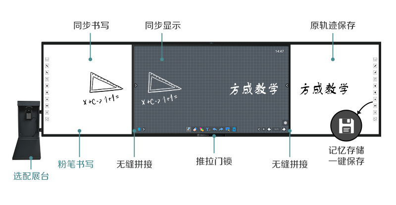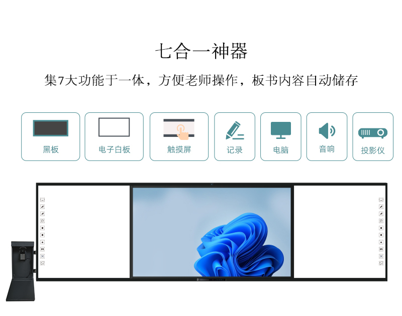 板書教學(xué)記憶一體機(jī)-記錄板書內(nèi)容、再現(xiàn)課堂過程、轉(zhuǎn)化教學(xué)資源,板書教學(xué)記憶一體機(jī)集六大產(chǎn)品于一機(jī),在不改變老師板書習(xí)慣的前提下,實現(xiàn)傳統(tǒng)教學(xué)與多媒體設(shè)備的智慧融合,設(shè)定了有板書記憶、板書同步顯示、板書自動分享等多樣化功能,每一個功能的實現(xiàn)都賦予了自己的使命。
