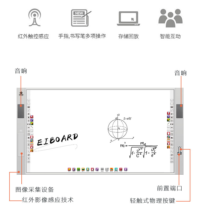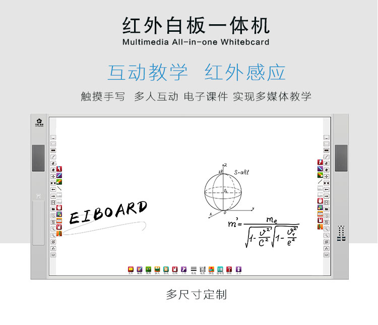 紅外白板一體機(jī)集電腦、音箱、展臺(tái)、智能中控、白板于一體,采用一體化無縫拼接設(shè)計(jì)美觀大氣,電控展臺(tái)方便收納,紅外二十點(diǎn)觸控滿足多人同時(shí)書寫,板面采用冷軋面板防撞防刮,尺寸擴(kuò)展性強(qiáng),滿足不同教學(xué)場(chǎng)景需求。